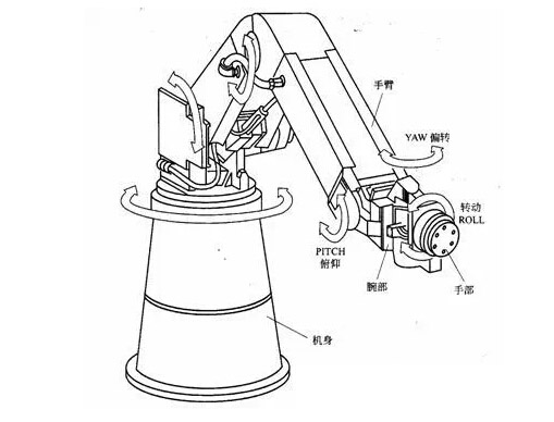 (3)臂部:用以連接機(jī)身和腕部,是支撐腕部和手部的部件,由動力關(guān)節(jié)和連桿組成。用以承受工件或工具的負(fù)荷,改變工件或工具的空間位置,并將它們送至預(yù)定位置。