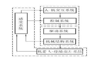 工業(yè)機(jī)器人系統(tǒng)由三大部分六個(gè)子系統(tǒng)組成。三大部分是:機(jī)械部分、傳感部分、控制部分。六個(gè)子系統(tǒng)是:驅(qū)動系統(tǒng)、機(jī)械結(jié)構(gòu)系統(tǒng)、感受系統(tǒng)、機(jī)器人—環(huán)境交互系統(tǒng)、人—機(jī)交互系統(tǒng)、控制系統(tǒng)。下面將分述六個(gè)子系統(tǒng)。