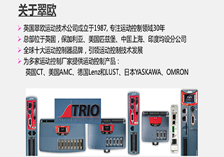 Trio的運動控制器、擴展接口、I/O模塊和HMI系列觸摸屏的設計采用最少的外部組件達到對工業(yè)機械的控制。在許多的應用中,Trio的控制器可以組合建立一個控制系統(tǒng),驅(qū)動一個多軸機械及其自身的輔助設備。